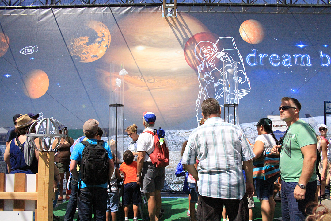 This is the California Capital Airshow. It lasts for one weekend a year and attracts more than 120,000 people. Incubation is 8 months of concept time, close collaboration with SAFE leadership, business teams, communication teams, local wide format vendors, and national grand format vendors. We strived to create an experience that is educational, immersive, and a once in a lifetime experience.
