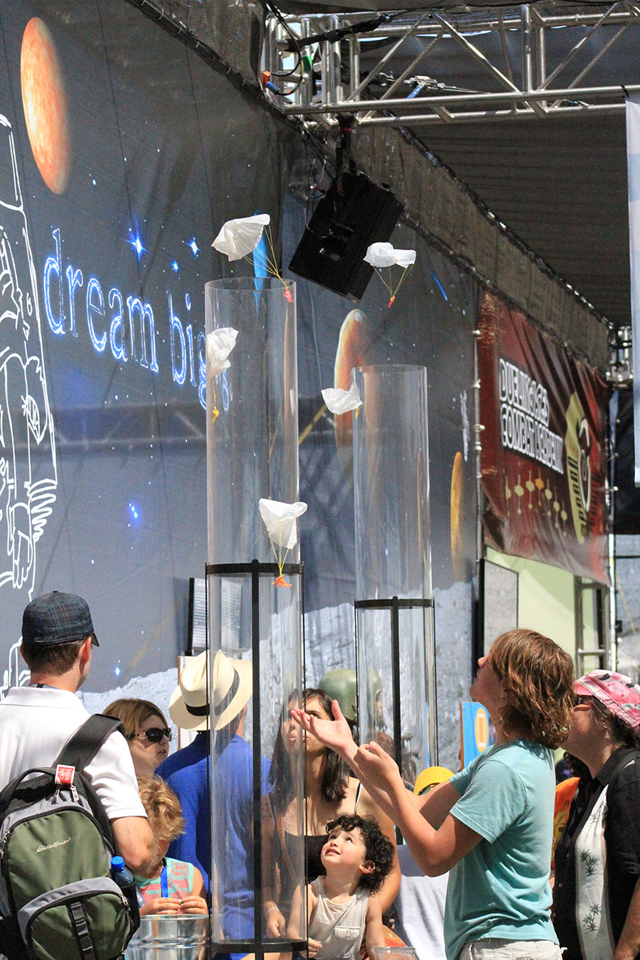 20' tall backdrops and handmade parachute launch tubes.