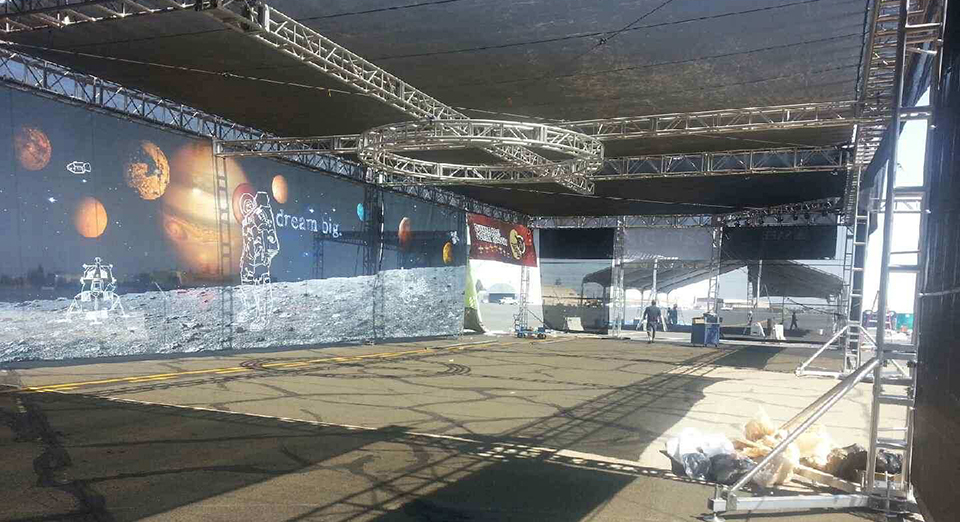 20' video wall showcasing a very moving shuttle Columbia launch video compete with timed foggers!