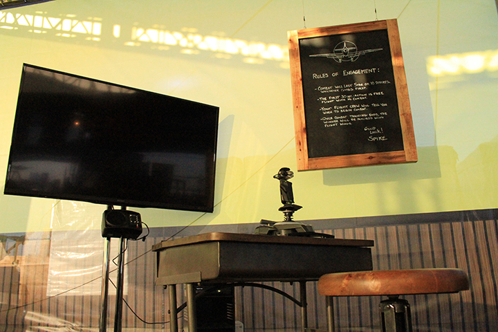 Flight sim area with real pilot instructors.